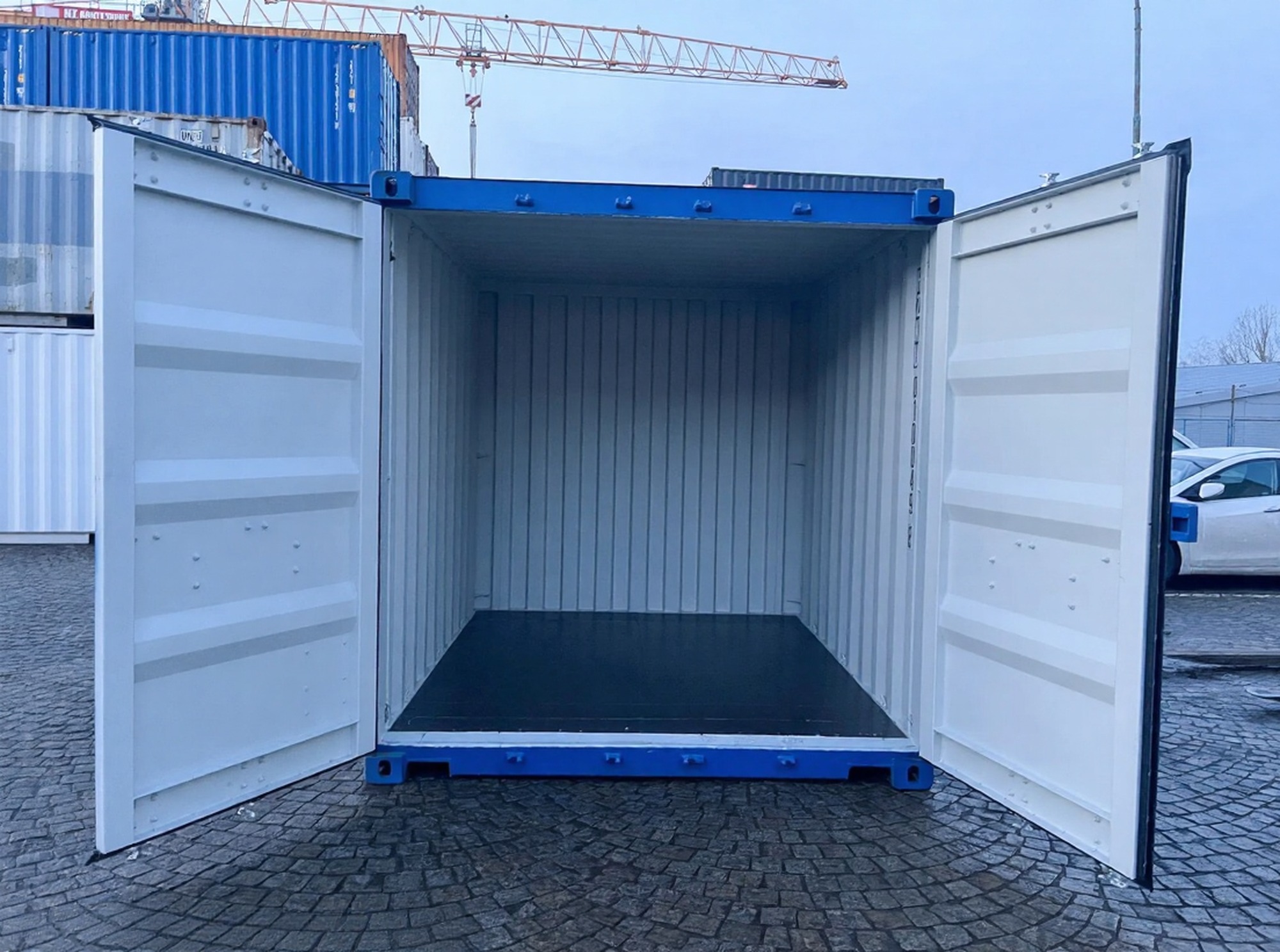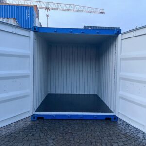 Contentor robusto e durável em aço Corten, ideal para armazenamento seguro. Oferece um volume de 15,76 m³ com dimensões otimizadas para uso profissional ou em obras.