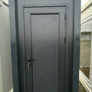 As paredes e o teto são feitos de painéis sanduíche com isolamento rígido de poliuretano, garantindo uma excelente eficiência térmica. A porta de alumínio com painel basculante em vidro permite a ventilação e a iluminação natural, enquanto o sistema elétrico integrado garante uma utilização cómoda em todas as estações do ano.